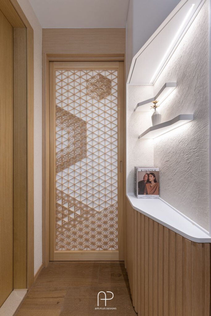 這次 am Plus 全屋空間掌握了日式設計核心,單位使用眾多傳統日式、自然、木質元素,並在造型、燈光、物料搭配上加入不同巧思,以有別以往的新式簡約日系風格,打造舒適居家空間。