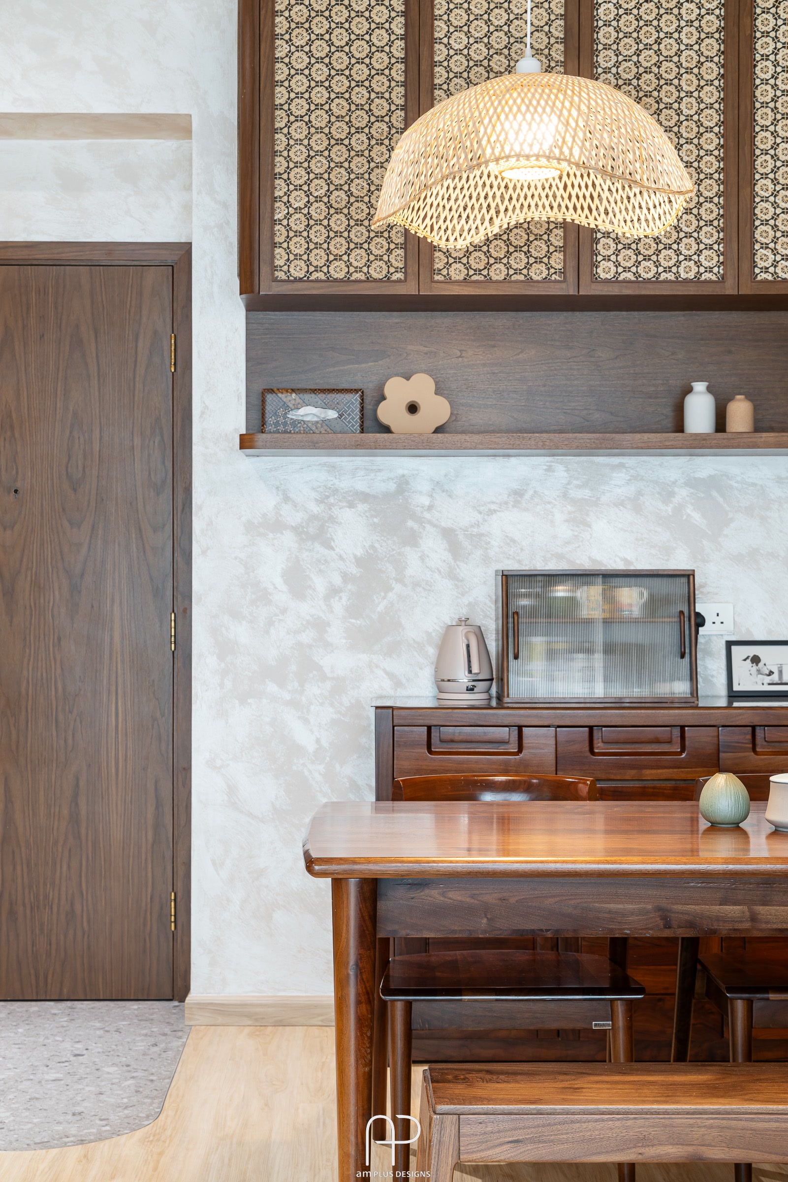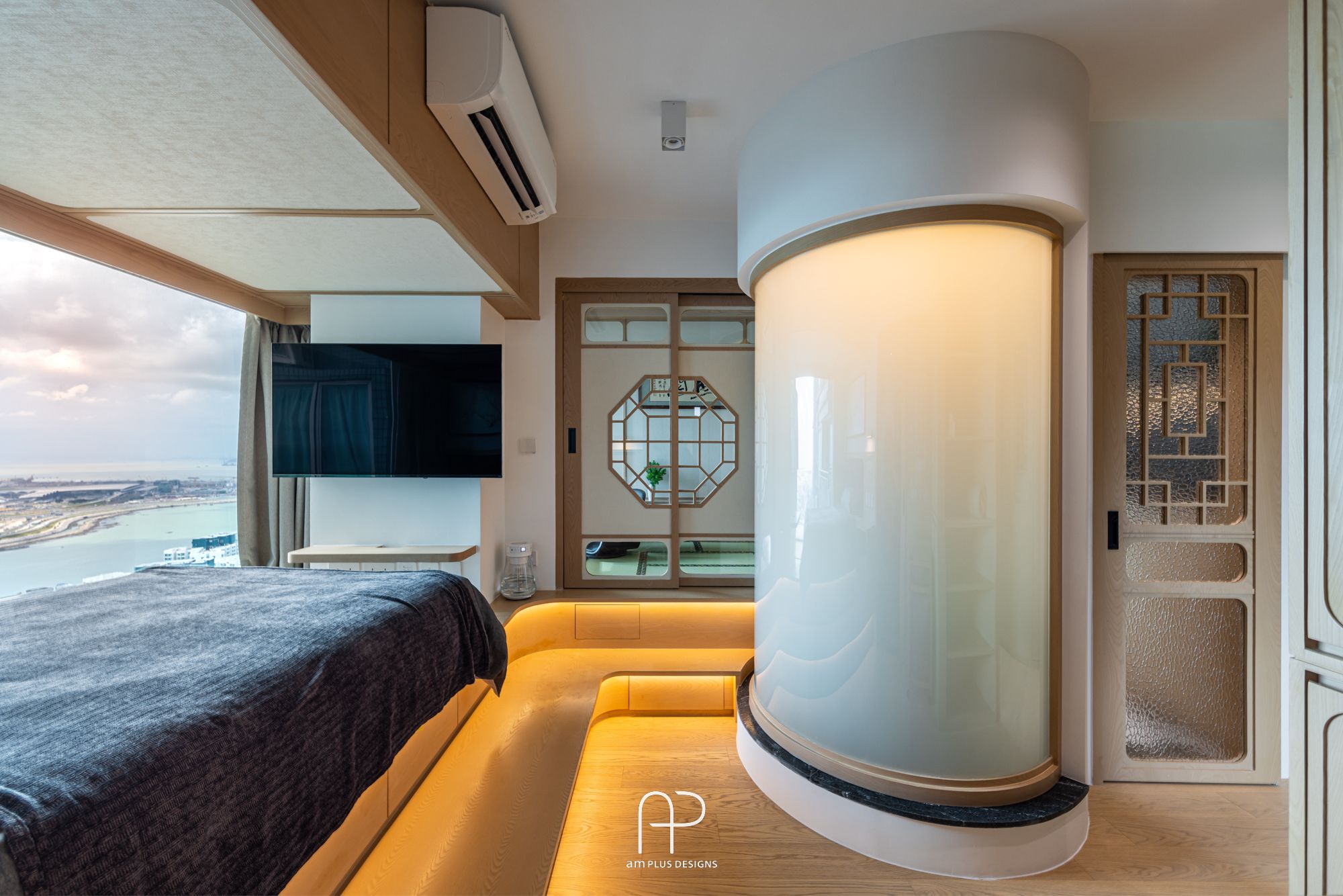 amPLUS Designs 以「新中式庭園風」為設計理念,為映灣園住宅打造充滿自然寫意的家居空間。此設計揉合傳統中式建築特色與現代簡約風格,並巧妙運用自然元素,營造出和諧寧靜的居家氛圍。
